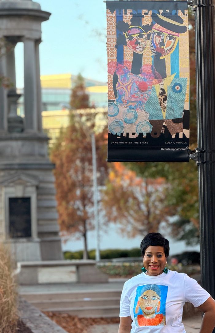 Lola’s work is gaining widespread recognition, with her pieces featured at The Hamilton Hotel in Alpharetta, a distinguished venue. Her Heritage in Hues showcase at the Distillery of Modern Art (DoMA) explored deep themes of identity and heritage, reflecting her Nigerian roots. As a member of the Arts and Culture Commission of Brookhaven, Lola serves as a cultural ambassador and advocate for the arts.